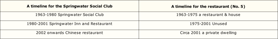 The whole site was sold again in the late 1999’s and the Springwater Inn was turned into a Cantonese Restaurant which is now a very successful enterprise. The former house/restaurant on the East side of the site was converted and refurbished and sold as a private dwelling.